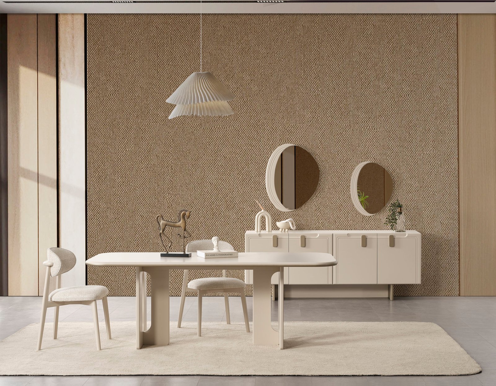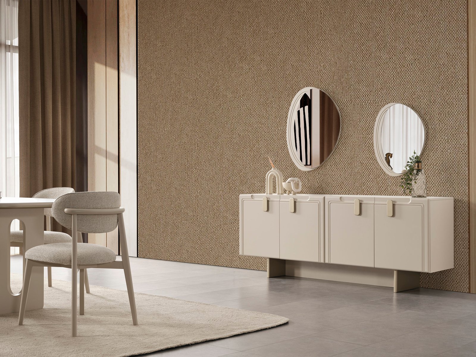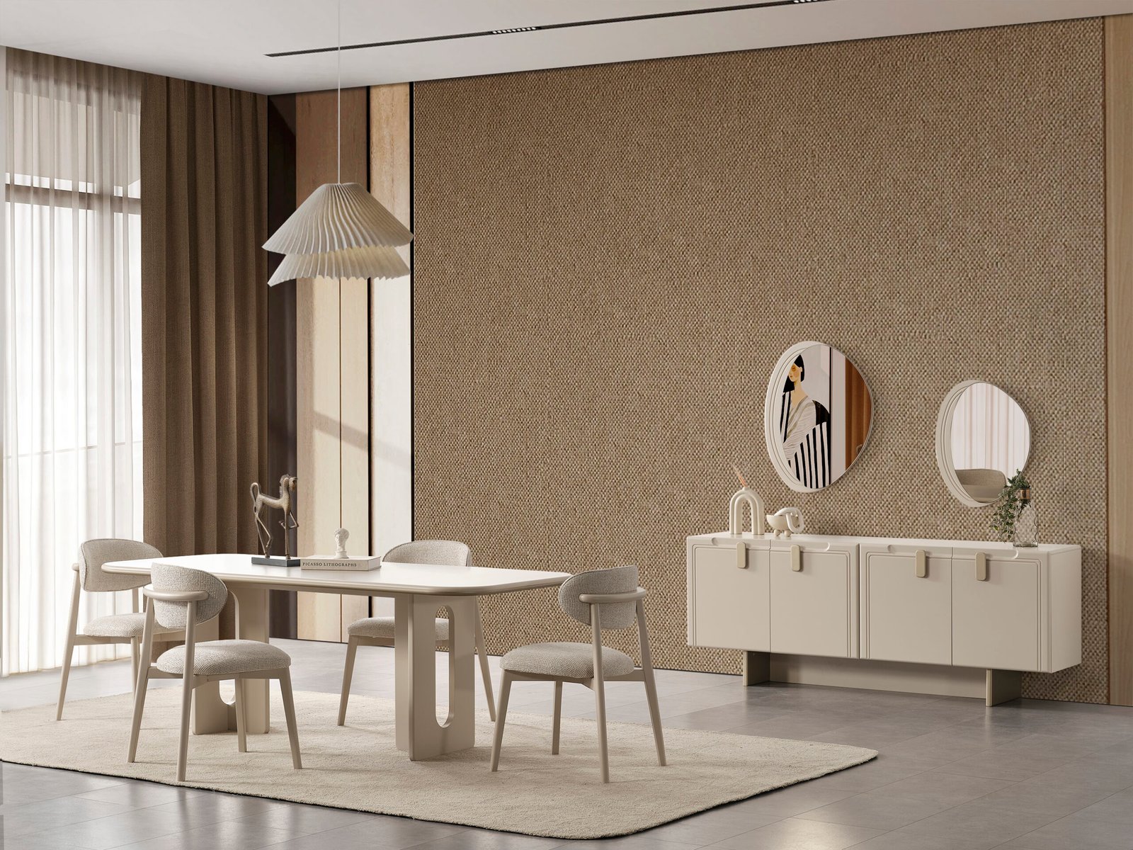 Takım İçeriği; 4 sandalye + yemek masası + konsol ve aynası şeklindedir.